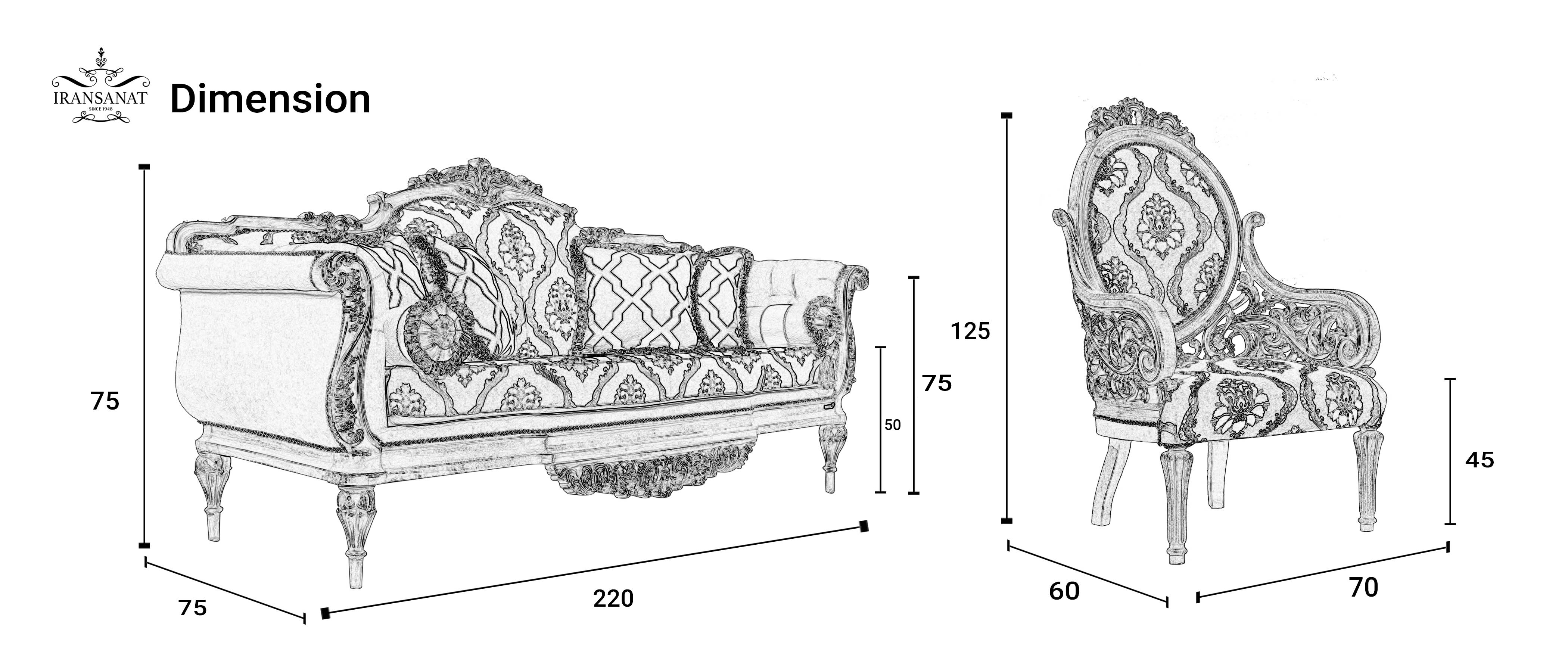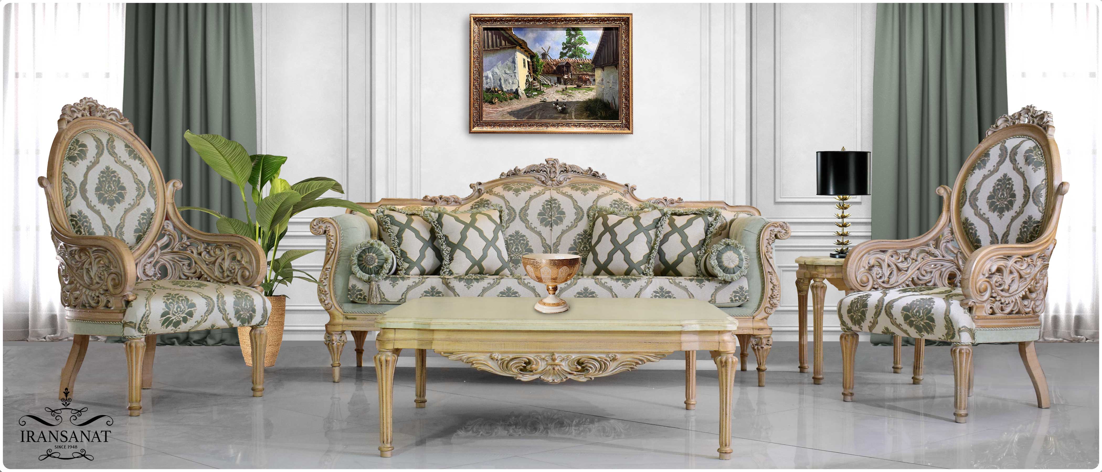 هارمونی بی نظیر طرح پارچه ترک با گل های منبت مبل