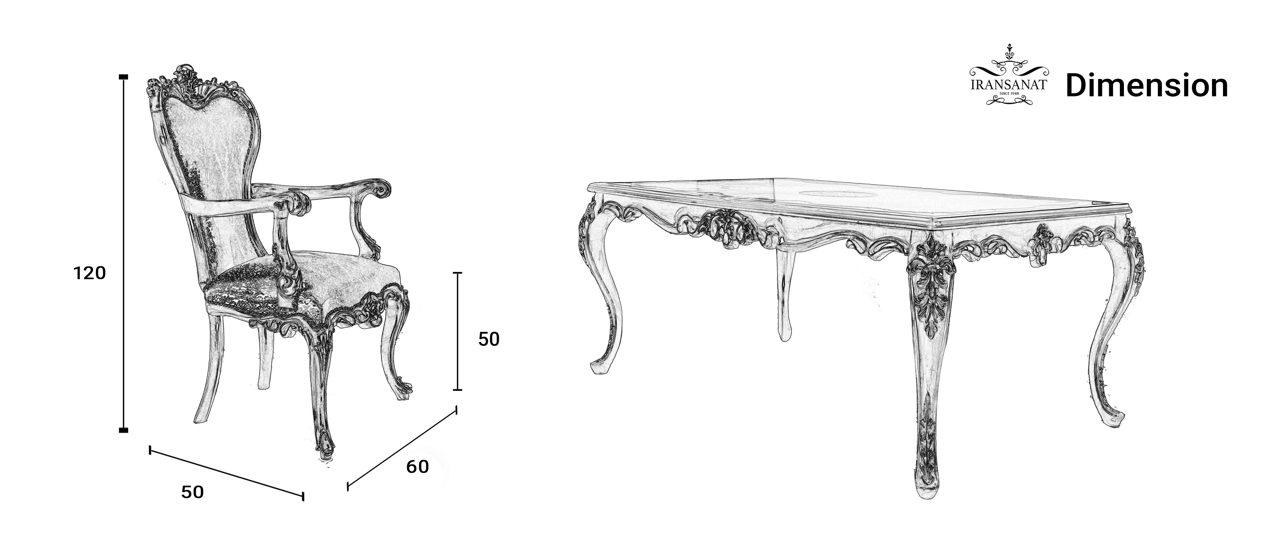 میز 8 نفره + 6 صندلی + 2 شاه نشین طرحی نیو کلاسیک