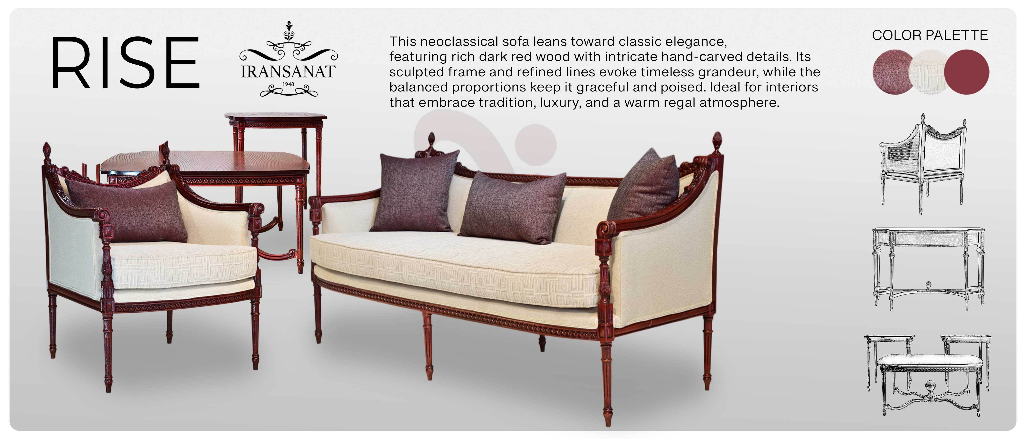این مدل بینظیر از مبلمان کلاسیک، با طراحی ظریف و منبتکاریهای کمحجم اما دقیق، تلفیقی چشمنواز از وقار کلاسیک و سادگی شیک نئوکلاسیک را به نمایش میگذارد. رنگ قرمز لوکس چوب در کنار منبتهای ریز و کارشده با ظرافت، آن را به انتخابی خاص برای فضاهای اصیل و مجلل تبدیل کرده است.