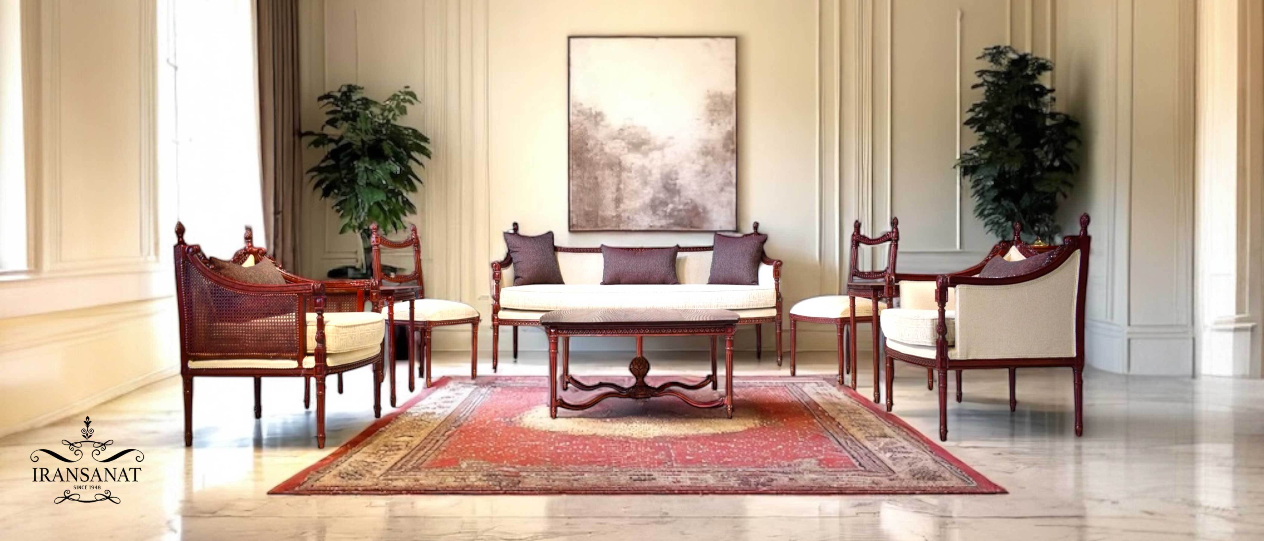 مبلمان کلاسیک فاخر با رنگ چوب قرمز ظرافتی شکیل در قالب شکوه اصیل